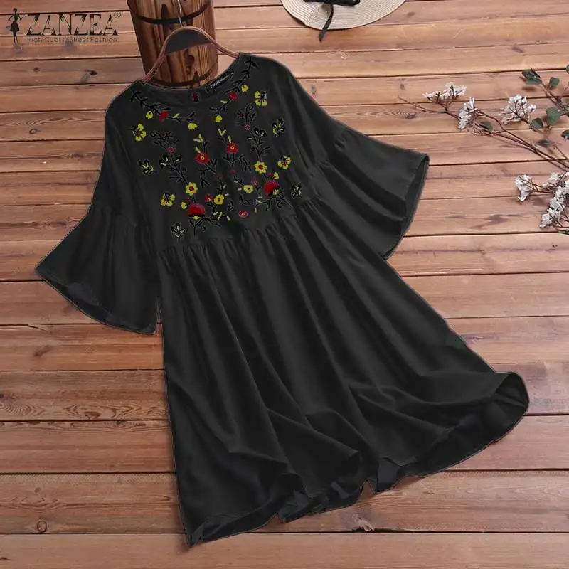 Hot Sale 2020 Bohemian Floral Embroidery Sundress Summer Flare Sleeve Beach Dress ZANZEA Women Vintage Party